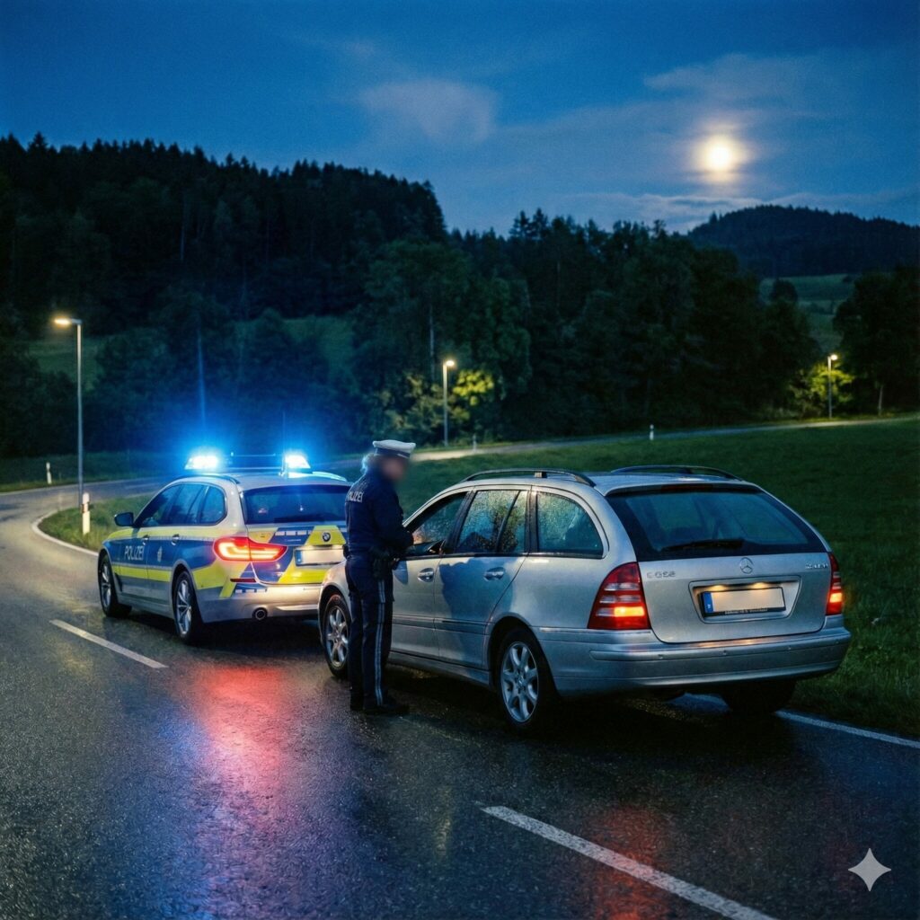 Eine Streife der Polizei Holzkirchen hat am späten Abend des 09.12.2025 einen 67-jährigen US-Amerikaner gestoppt, der mit zu viel Alkohol unterwegs gewesen war und dessen Pkw keinen gültigen Versicherungsschutz mehr hatte. Die Beamten hielten den Mercedes gegen 22:50 Uhr auf der Miesbacher Straße an. Bei der Kontrolle zeigte das Atemalkoholmessgerät einen Wert von 0,25 mg/l. Zudem stellte die Polizei fest, dass die Versicherung des Fahrzeugs bereits seit dem 17.09.2025 erloschen war.
