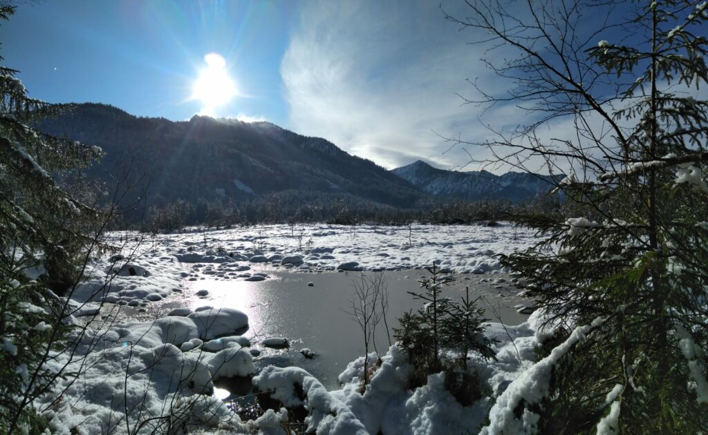 Bereits 2010 hatte der Landkreis Miesbach erste Renaturierungsmaßnahmen angestoßen. Vor kurzem wurde die Fläche mit Unterstützung des Freistaats Bayern und der Europäischen Union erworben. Unter Leitung von Anne Nowottnick und Vroni Feichtinger prüften die Moormanager der Regierung von Oberbayern nun weitere Umsetzungsschritte.