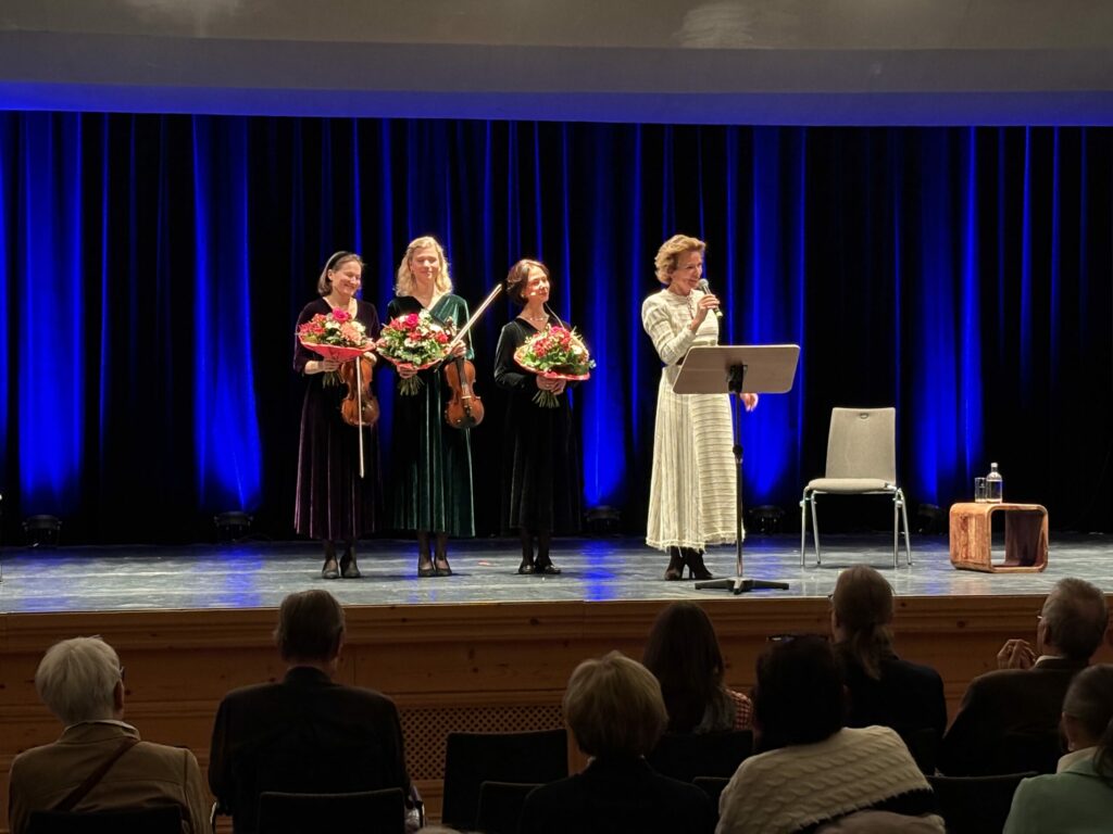 Ein besonderer Höhepunkt war die künstlerische Darbietung „Der Tanz des Lebens“ von Erzählerin Diana von Waldburg-Zeil. Gemeinsam mit den Violinistinnen Amelie von Feilitzsch und Laura Caterina Hampe verband sie Texte und Musik zu einer allegorischen Würdigung des Lebens. Das Programm thematisierte Liebe, Trauer und Abschied und endete mit einer eindringlichen Botschaft über den achtsamen Umgang mit Leben und Vergänglichkeit.