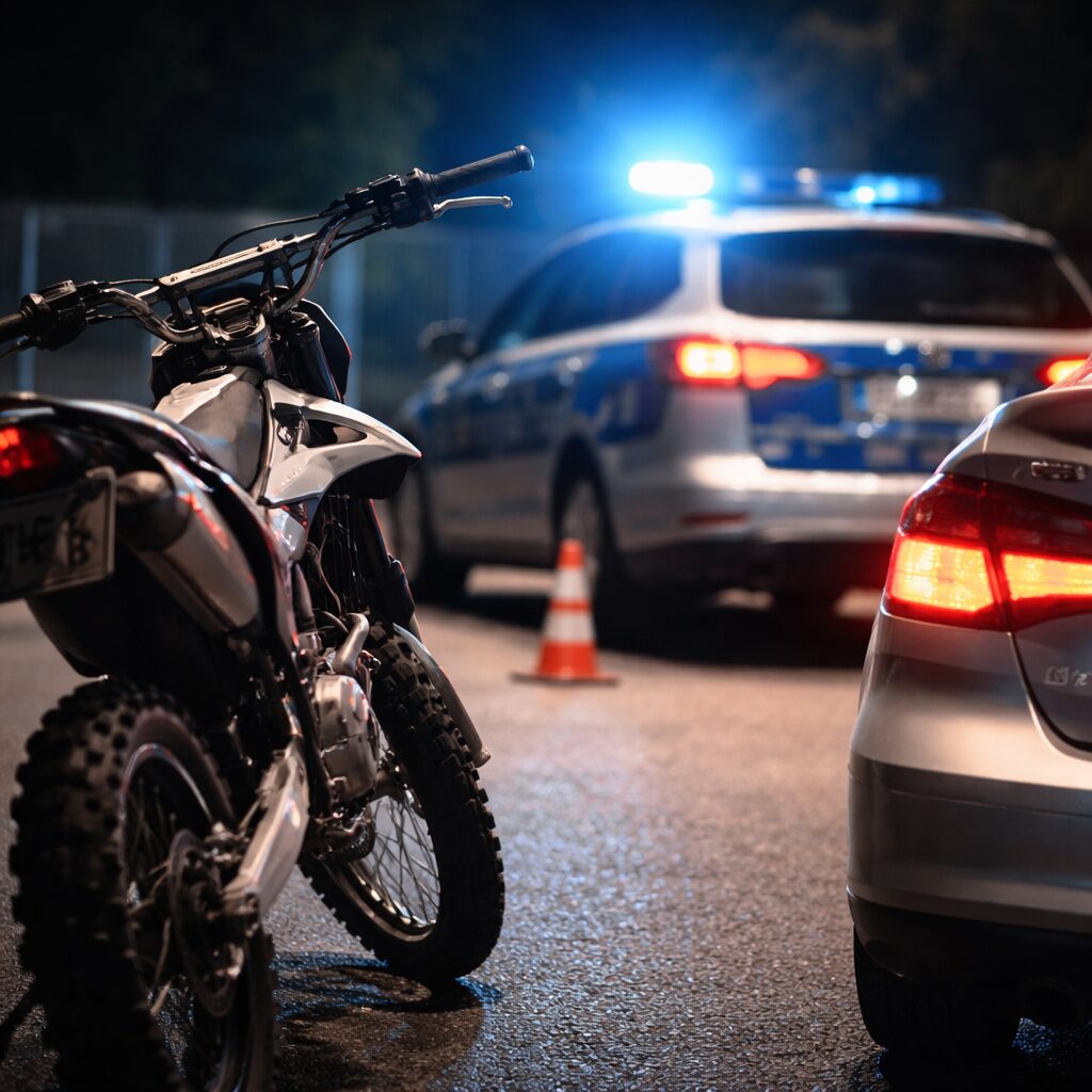 Am Samstag, 07.06.2026, kontrollierten Beamte gegen 23.20 Uhr in der Schlehdorfer Straße in Kochel einen 16-jährigen aus dem Ort. Der Jugendliche fuhr mit einer Crossmaschine mit etwa 65 km/h, an der kein Kennzeichen angebracht war. Bei der Kontrolle stellten die Polizisten fest, dass die Drossel des Kleinkraftrads entfernt war.