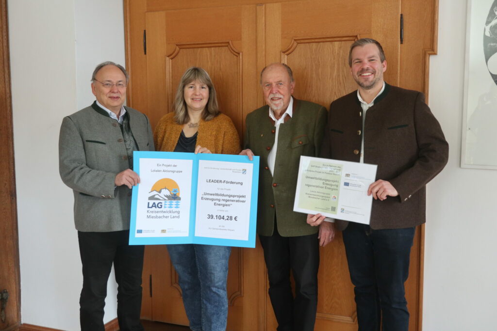 Bild (v.l.): Bürgermeister Leonhard Wöhr, Techn. Vorstand des KU Gemeindewerke Weyarn Christl Altenweger, LAG-Vorsitzender Michael Pelzer und LAG-Manager Michael Stacheter (Foto: REO)