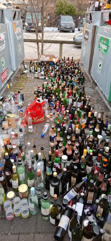 Empfohlen wird, Glasabfälle erst ab der zweiten Januarhälfte zu den Sammelstellen zu bringen, sofern zuhause Lagerplatz vorhanden ist.