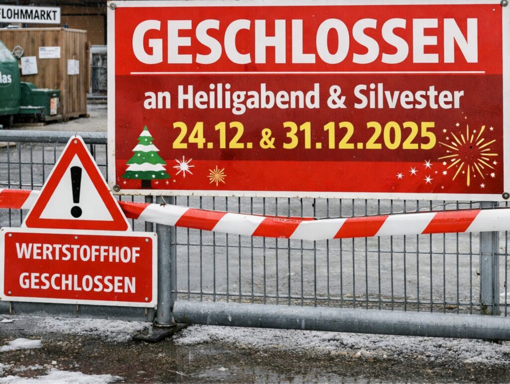 Das Wertstoffzentrum in Warngau bleibt an Heiligabend (24.12.2025) und an Silvester (31.12.2025) ganztägig geschlossen. Betroffen sind Wertstoffhof, Problemmüllannahme, Flohmarkt sowie die Verwaltung des VIVO Kommunalunternehmens.
